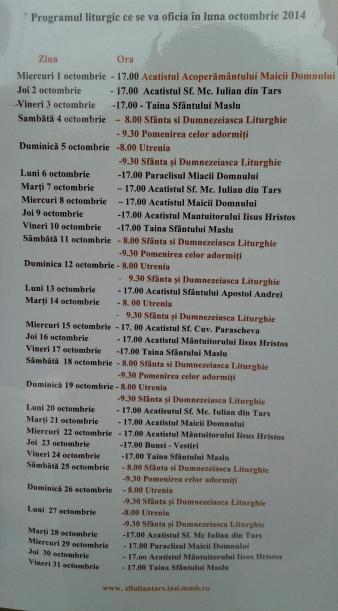 Programul liturgic ce se va oficia in luna octombrie 2014 .