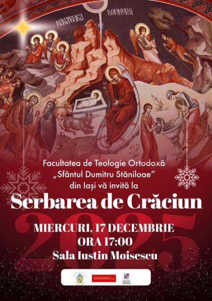Facultatea de Teologie Ortodoxă „Sfântul Dumitru Stăniloae” din Iași organizează, de la ora 17.00, în Sala Iustin Moisescu, Serbarea de Crăciun, un eveniment dedicat bucuriei Nașterii Domnului, cu participarea Înaltpreasfinţitului Părinte Mitropolit Teofan.